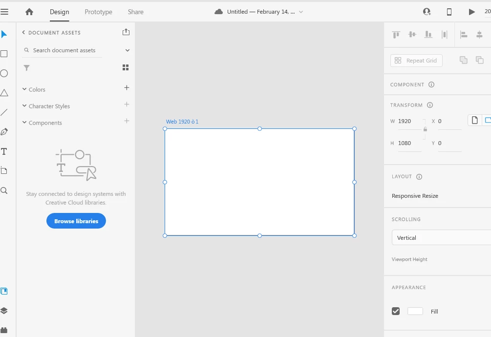 I want to use link asstes between two layers on adobe xD i found there isnot (+) to add assets and when i open new layer to make link asstes i found out the button was browse libraries