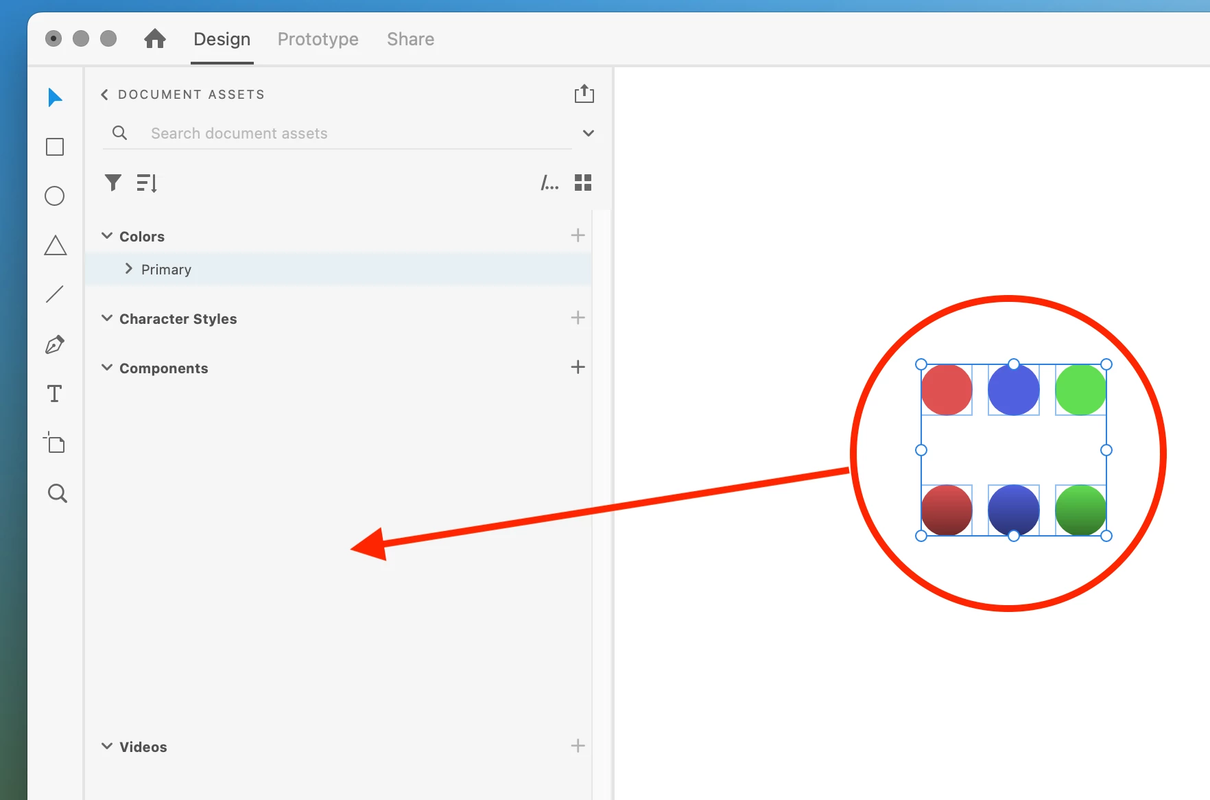 Include multiple functions within the Document Assets (Colors, Character Style, Components, Videos). For instance