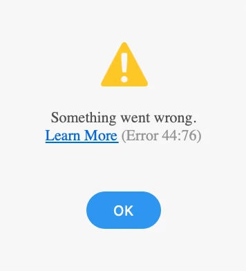 - The error Error 44:76 occurs every time I attempt to publish "create link" or "update the link".