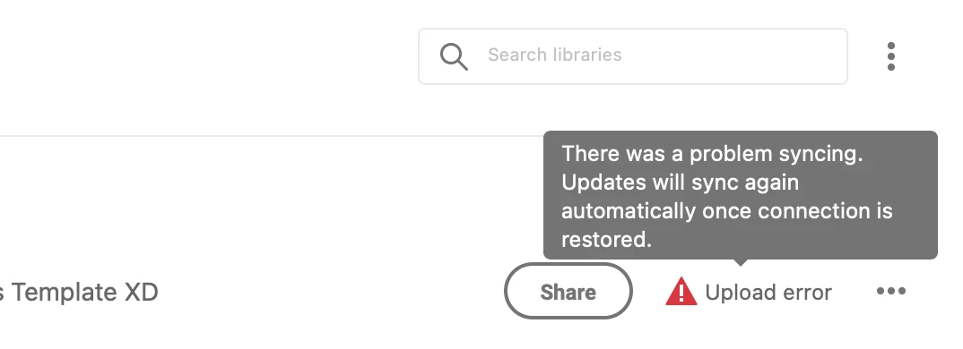 I keep getting this error when trying to publish a library. I'm definitely connected to the internet and the cloud, so I don't know why this won't work. I've tried leaving it since it says it'll fix automatically on its own but it has said this for days now. I have tried unpublishing and republishing as well as closing and restarting XD.