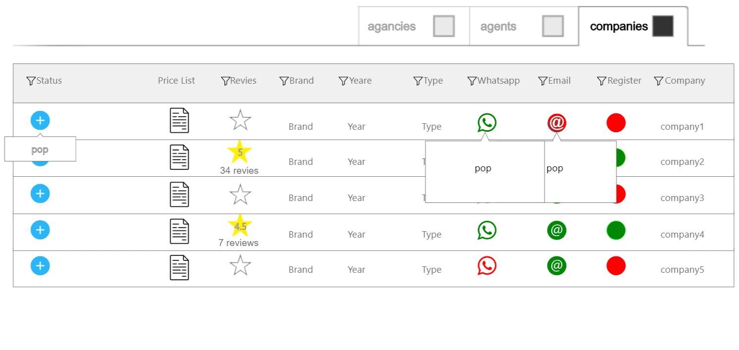 example: column (company) with states (company1, company2 ...) when I click on the row it show pop
