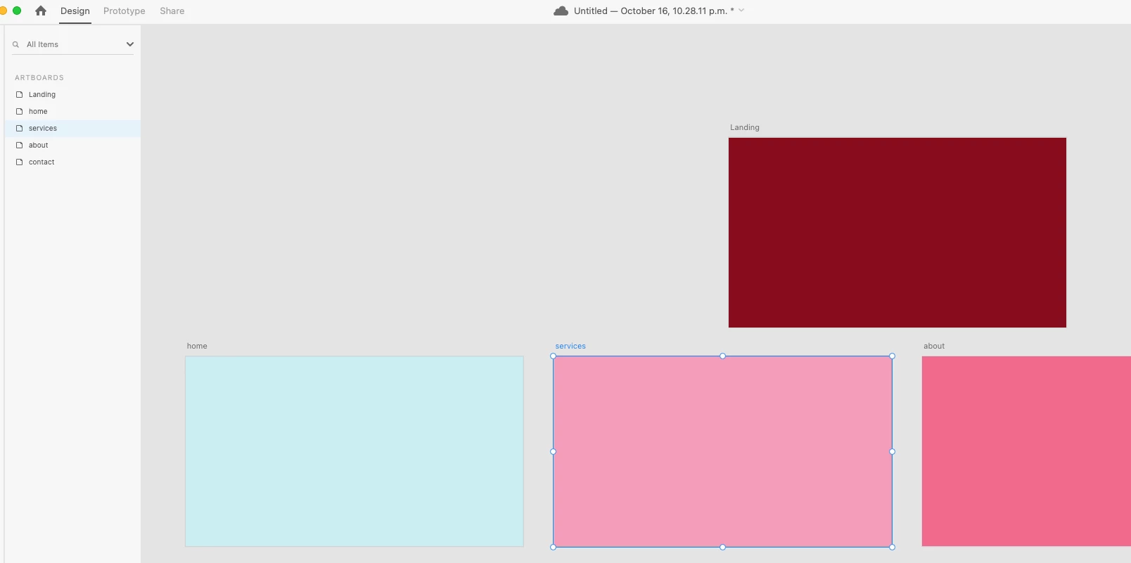 But, on the Xd file, I can create a design stage as shown, I did create my first artboard (frame), which was the landing page, but because I duplicated the artboard 4x, it got pushed down a bit. Each artboard can have its own unique layout and elements, regardless of the order in the Layers panel. So what you shown me is how your file is built. Noticed how my 'Contact' artboard is actually showing up first on my layers, but it's the '3rd' box in the second row?