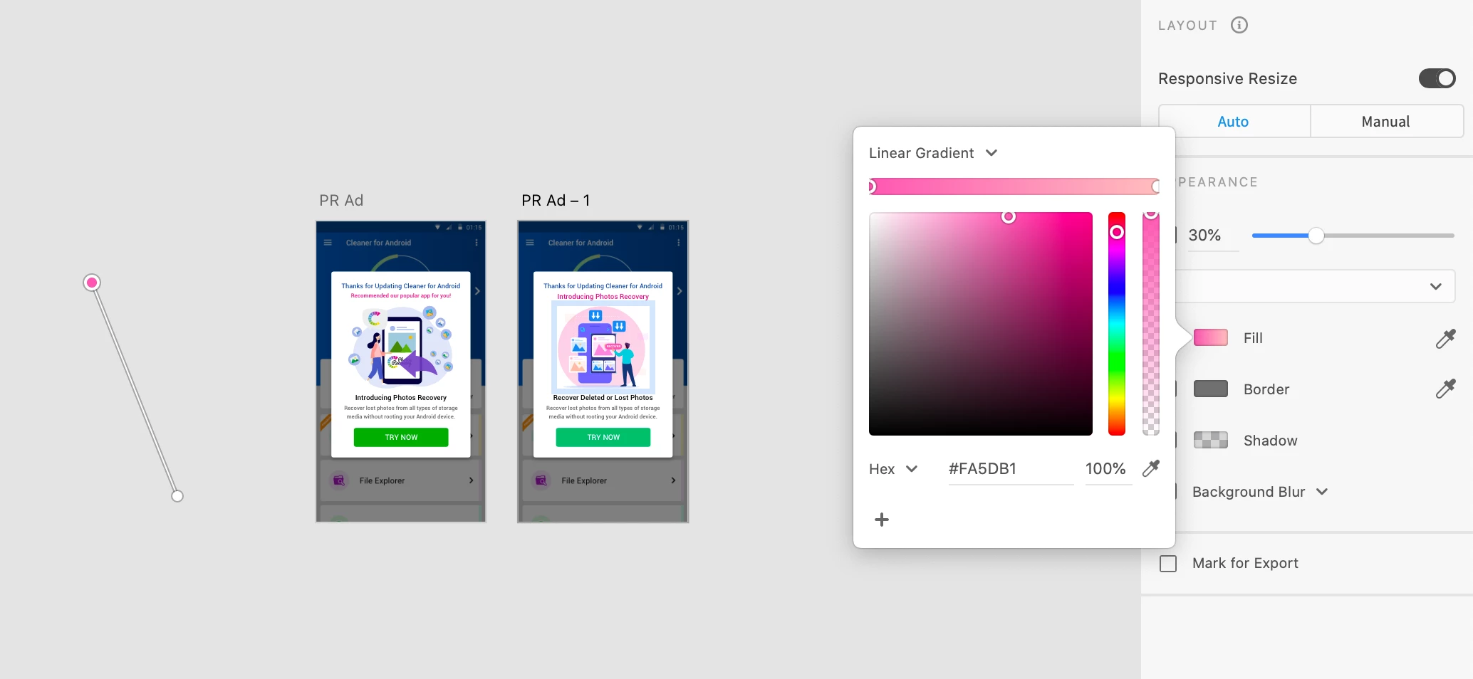 Creating a custom shape with the pen tool and applying gradient. Seems like it is missing control handles.