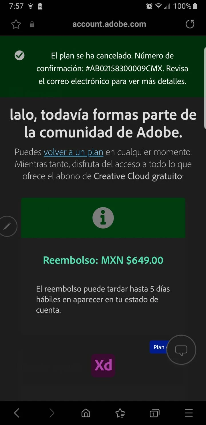 El dia 29 de Enero hice la cancelacion de un plan inmediatamente fue cobrado y mencionan 5 dias hábiles para regresar el dinero, hoy ha sido el 5to dia y aún nada. Solicito su ayuda