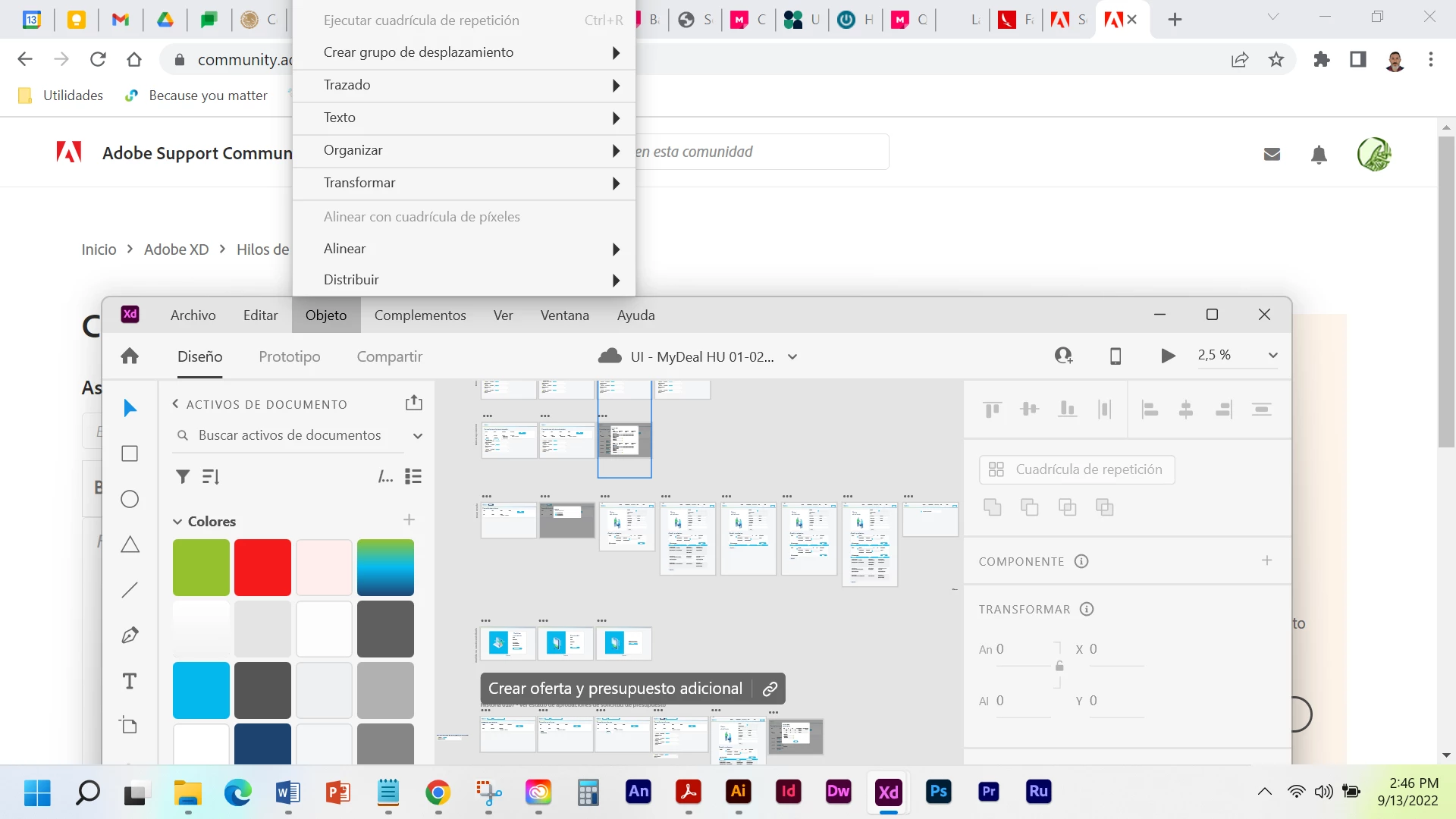 I have installed Adobe XD ver. 54.1.12.1 for Windows 11 and when i click in the menu bar in "object" it opens upward outside the application window, all other menu items open normally downwards. Check it out: