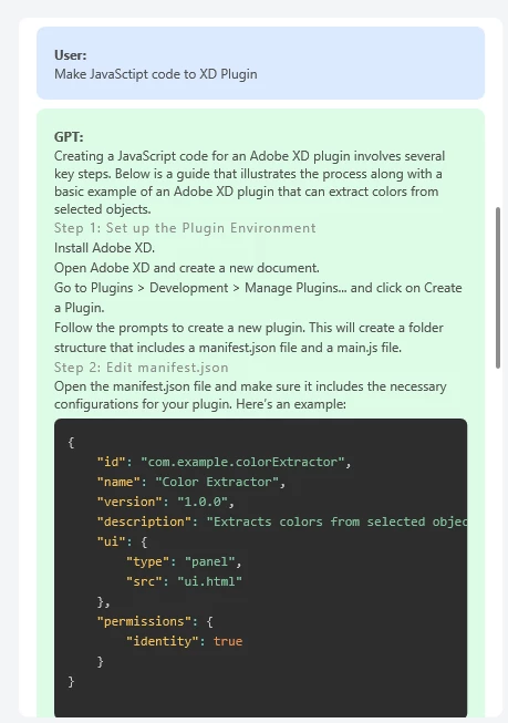 3. XD, due to UXP limitations, does not support text selection in plugin panels. As a workaround, we generate copy buttons for colors and predefined elements in GPT's response, though full text selection remains an issue.