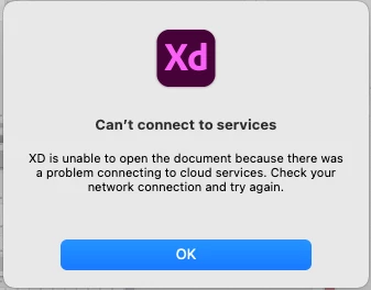 Our team cannot open a shared Cloud XD file. Stuck on "Connecting"