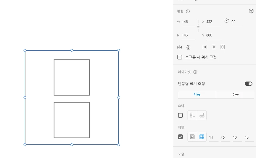 I make some group(group size is w146, h146) and added padding (14, 45, 10, 45)
