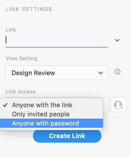 Can you confirm if you are trying to set a password on an existing link that was published from your document? Please attach a screenshot of the Share mode Properties Inspector that you see. It would help us better guide you based on your scenario.