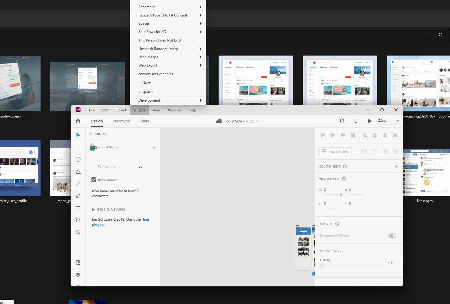 Pluggins menu is not displaying correctly in XD