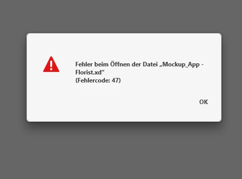 Problem beim Öffnen von Datei in xd (Fehlercode 47)