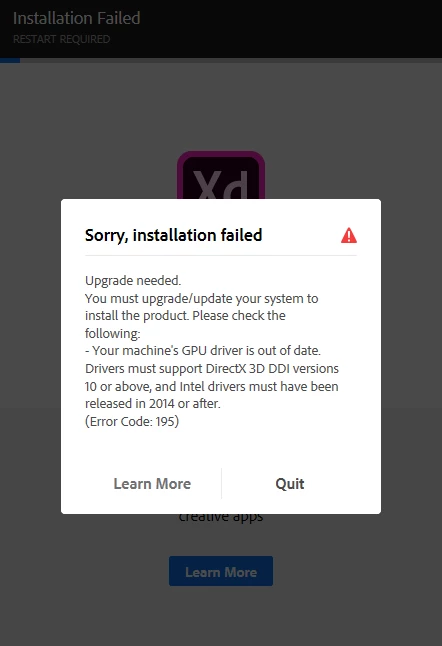 Problem of GPU when installing adobe XD