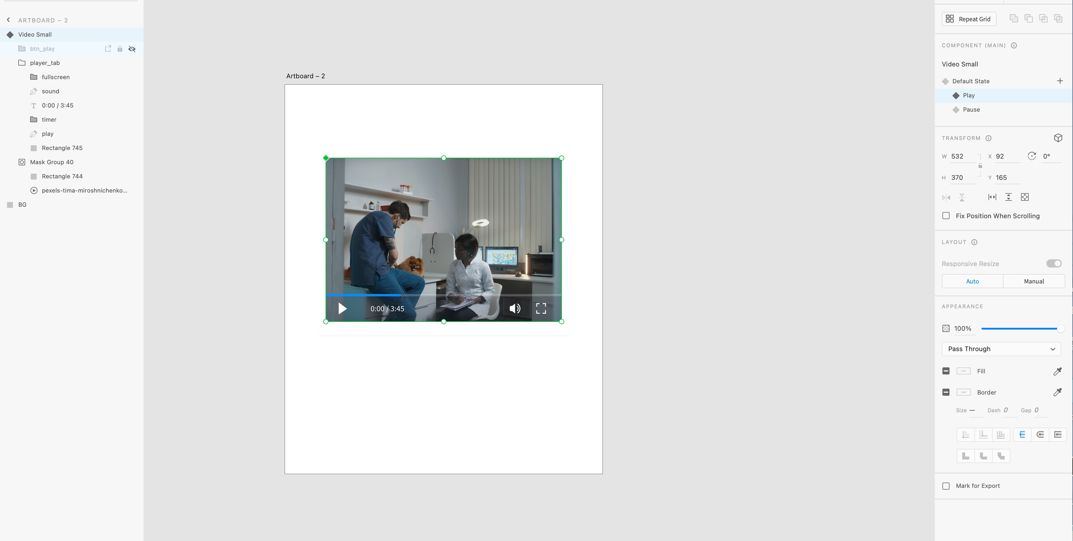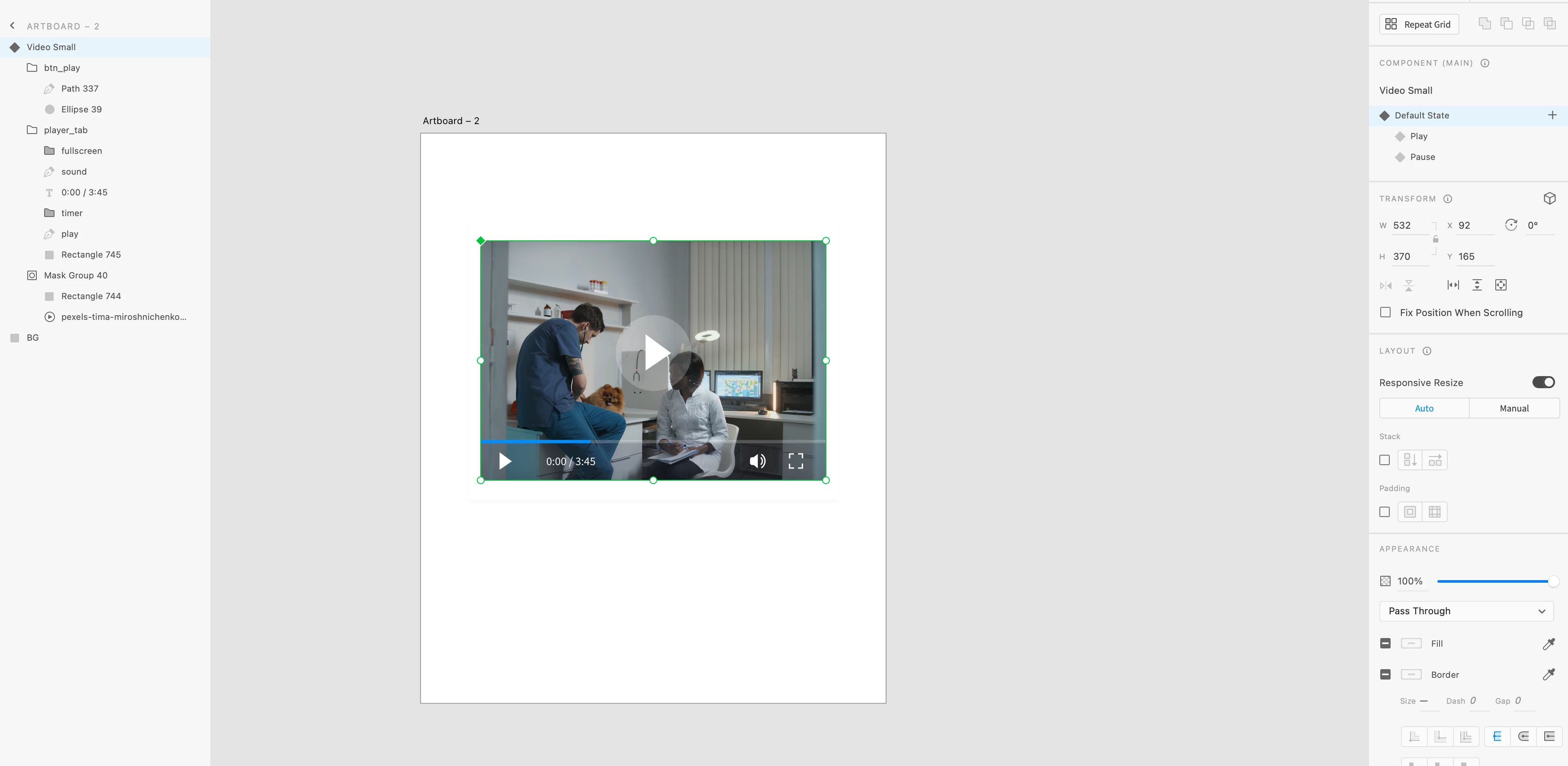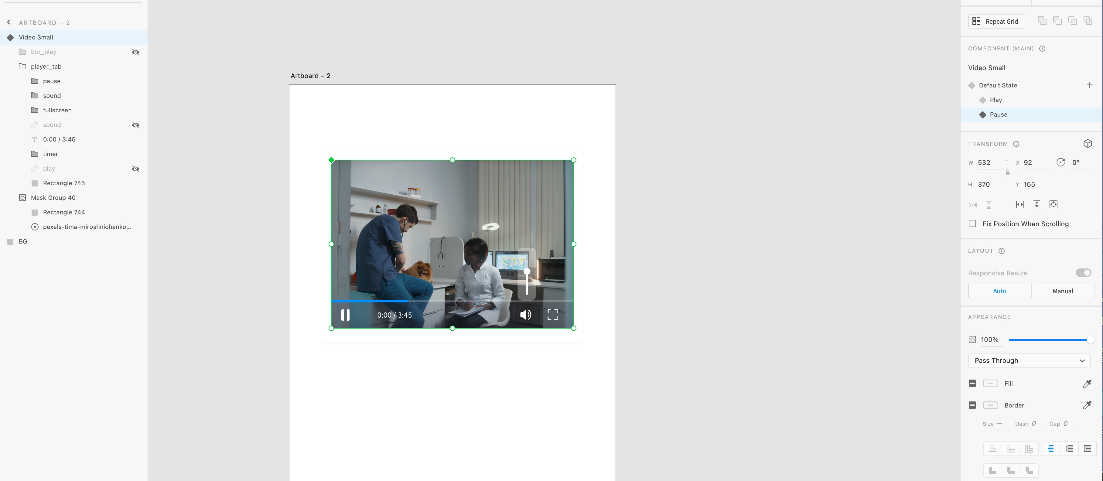 Hi, I'm confused about what is going on with my prototype (first time I've used a video in a prototype.) I've used a video player template, placed a video within it, then created default, play and pause states--I'd like to show the main play icon first, then the small play icon, then the pause icon, as shown in my screenshots. The prototype is playing the video, but the states are not changing. The image directly below is the only state that shows while the video is playing.