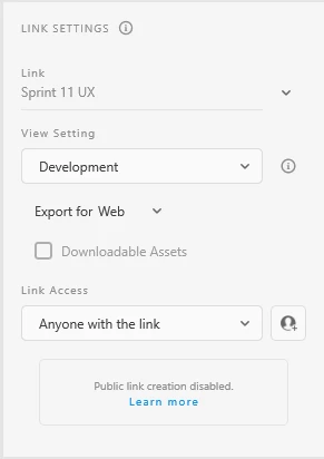 Public Link Creation for Adobe XD is disabled