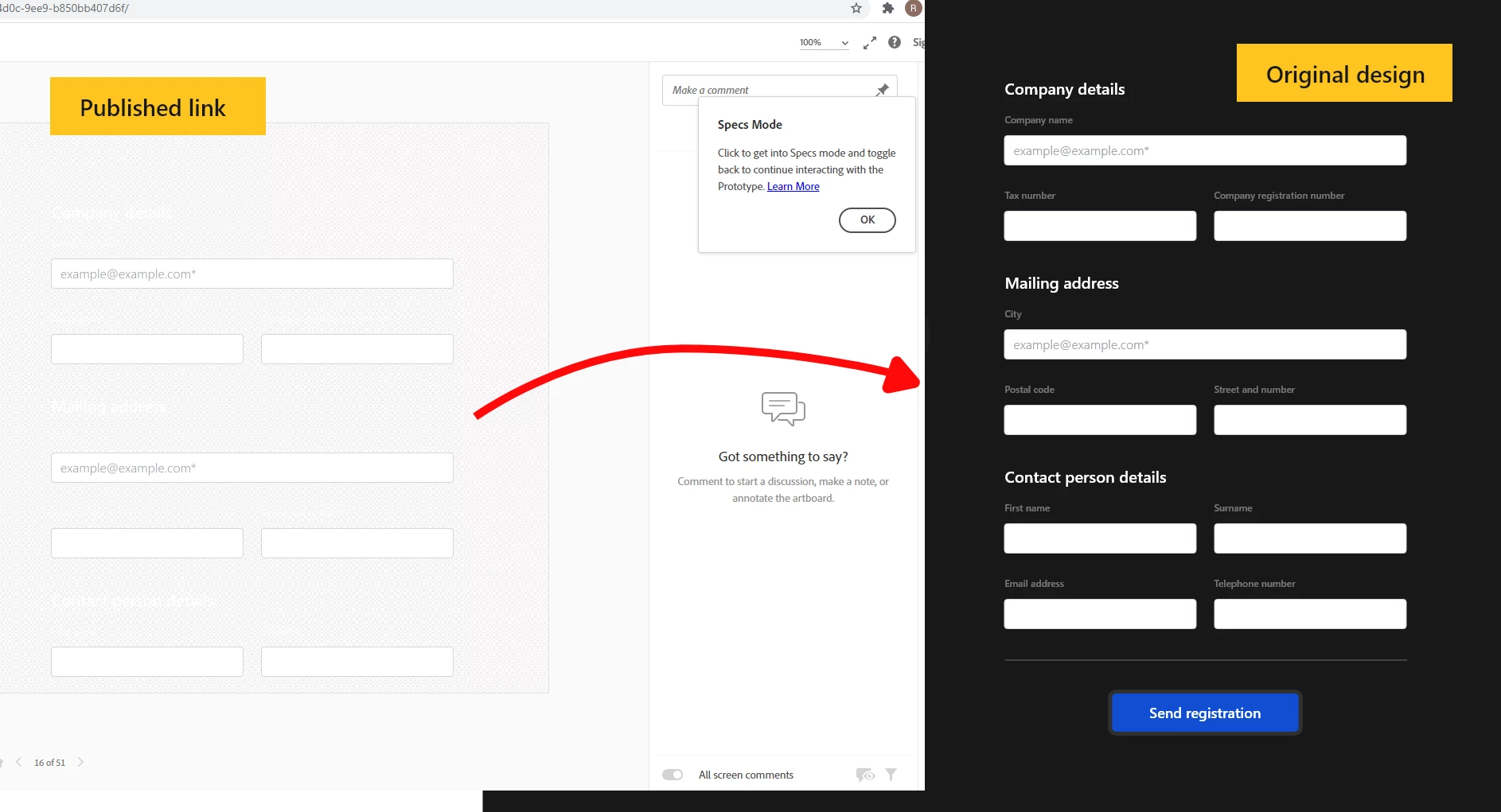 I've recently started struggling with a problem in XD: when I publish my work to share with my team, my published design doesn't appear correctly: the dark elements of my design turn white with a grain effect. I'm attaching an image. What could be the problem? Is it a bug? It's quite annoying because I can't present such a design for the client 😞