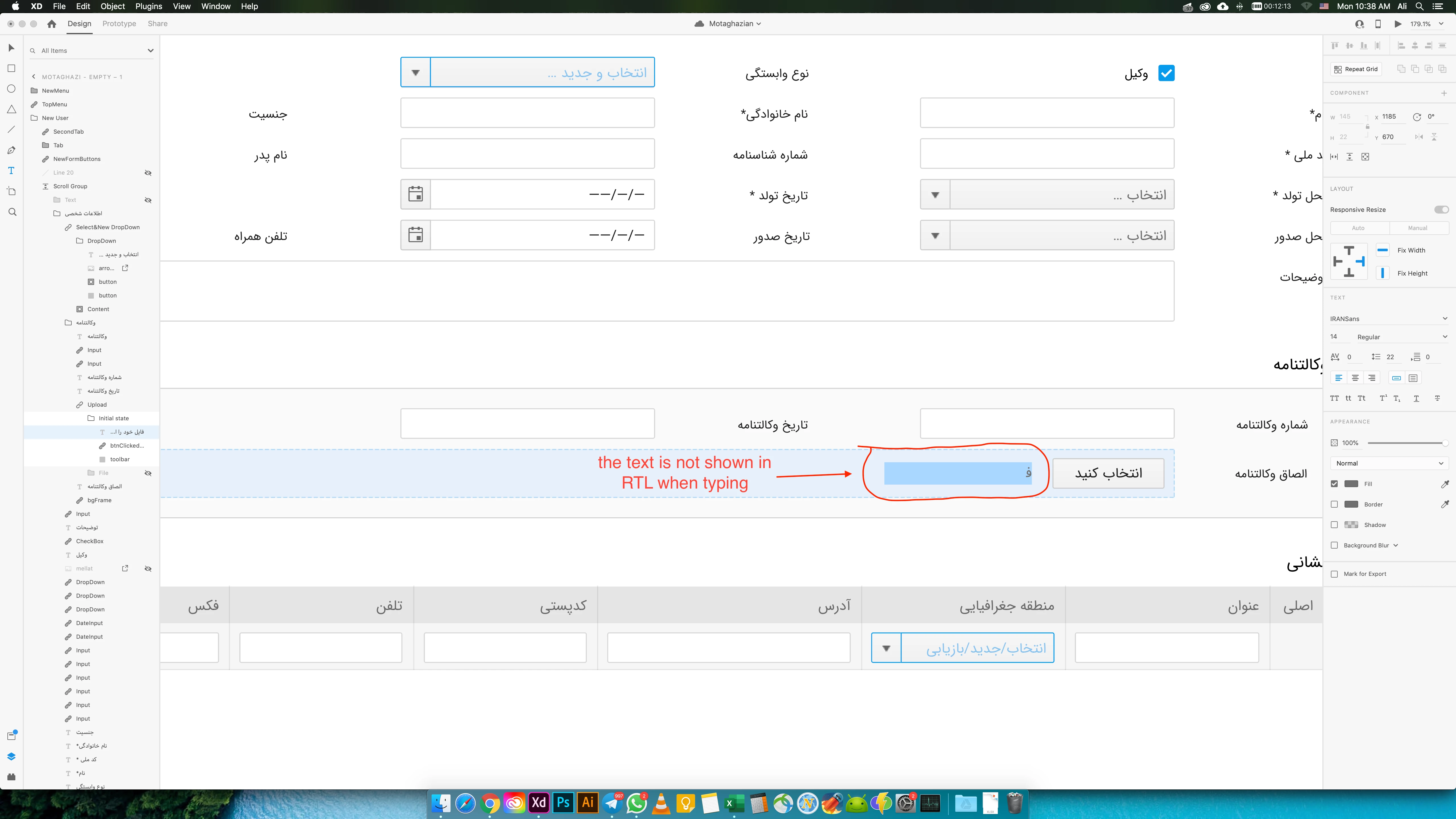 When typing RTL in all XD versions, the text is not shown until you finish the text.