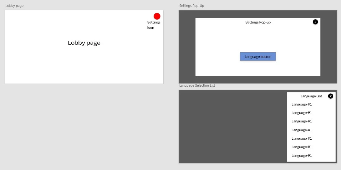 I have created a lobby page. In it a settings icon. Clicking on the settings icon will open up the settings pop-up modal. I used an overlay type for the settings pop-up.