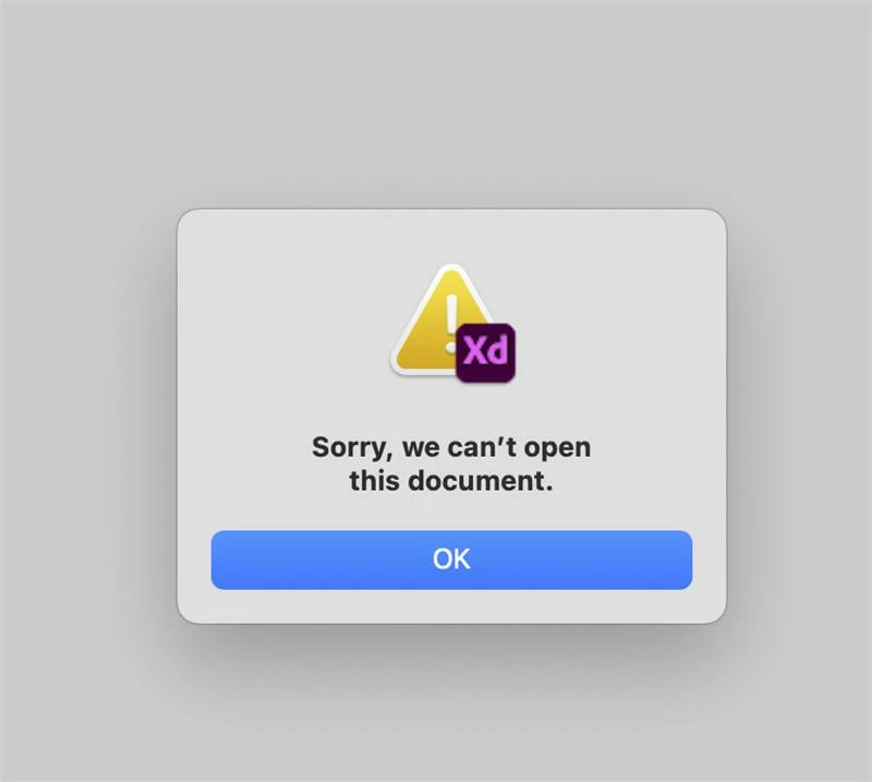 However, we don’t have any account issues. We both have the latest version of Adobe XD and when he tries to open my file in his Creative Cloud Desktop app under "Shared with you," he can open it.