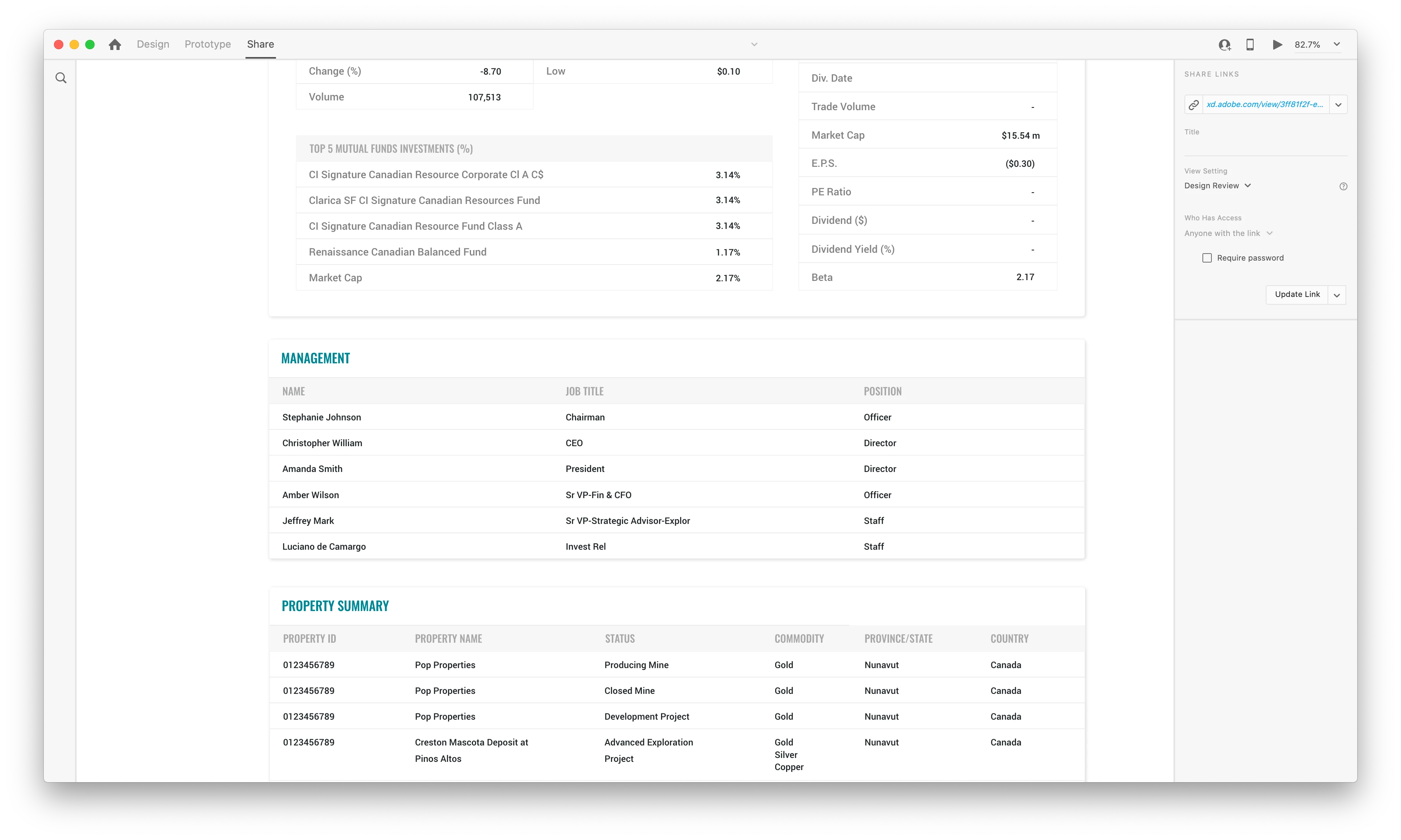 3. Please share a few screenshots of the Prototype on XD and how it looks when published.