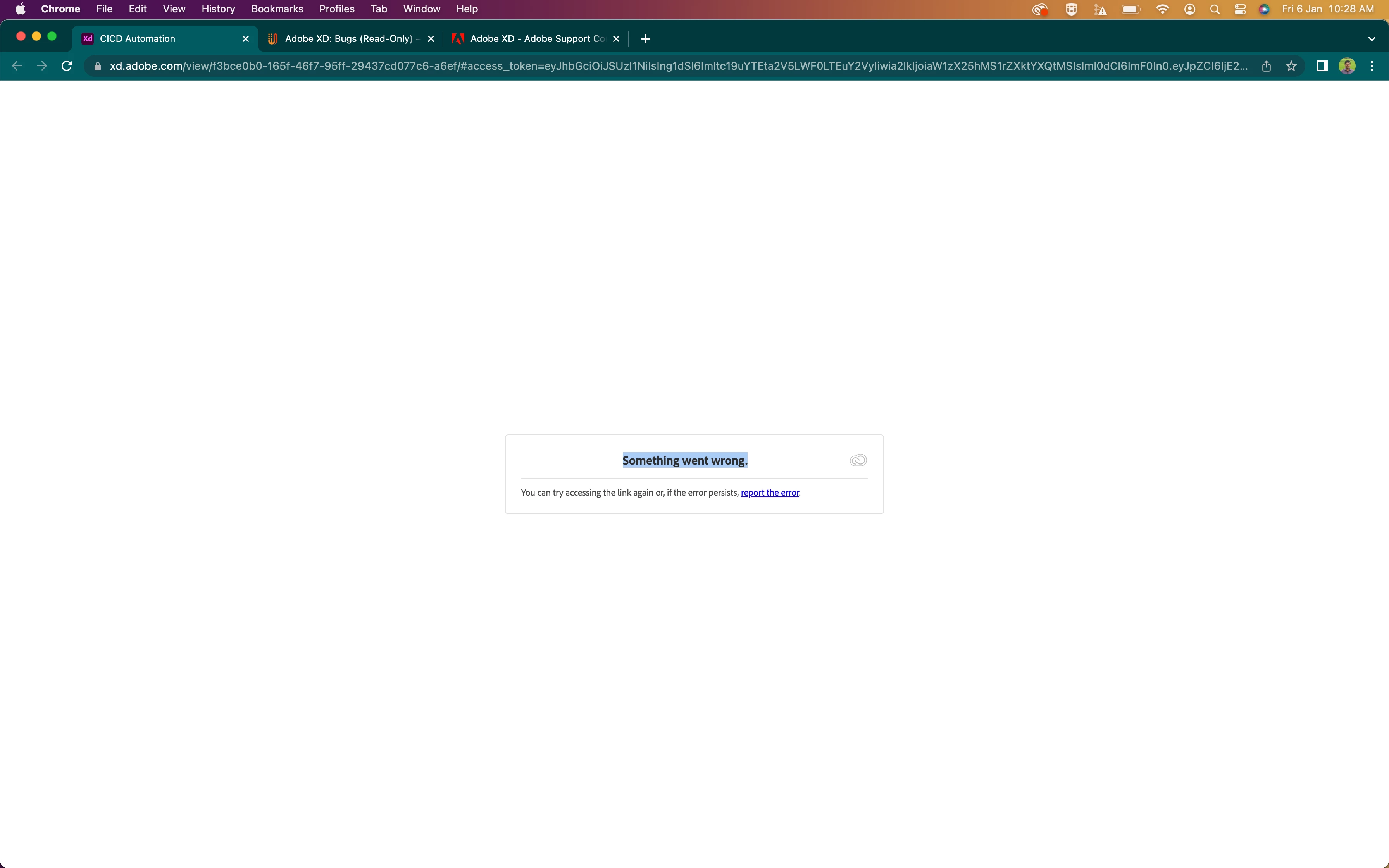 "Something went wrong" error getting while accessing Adobe XD prototype link