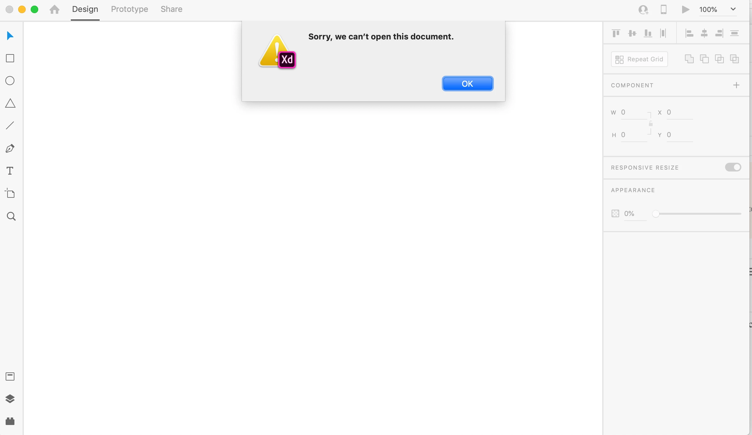 "Sorry cannot open this document" while opening the file in Adobe XD.