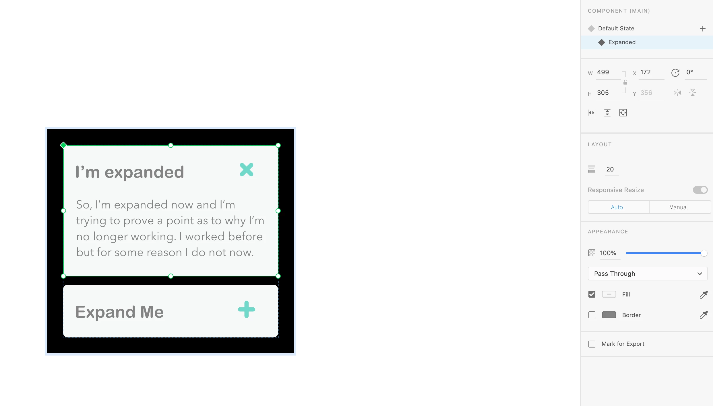 In preview mode and shared links, stacked components overlap each other and the background to not extend to accommodate the expanded stack. However, when I click on the component states manually in XD the group stack behaves as intended. I didn't start having this issue until after the Adobe XD 31 update. There have been several updates since then and none of them have fixed this issue and this is not my first time posting about this problem.