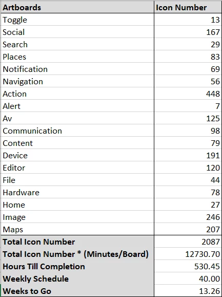 I calculated that I have 13 and a quarter weeks to go if I manually sift through making 2087 component states. I have attached screenshots attached at the bottom--they are of the Excel spreadsheet with the total amount of labor, some of the 18 artboards, and then the current state of the components compared to the desired state of the components. Now, this process is highly replicable, and as such, should have a solution through code.