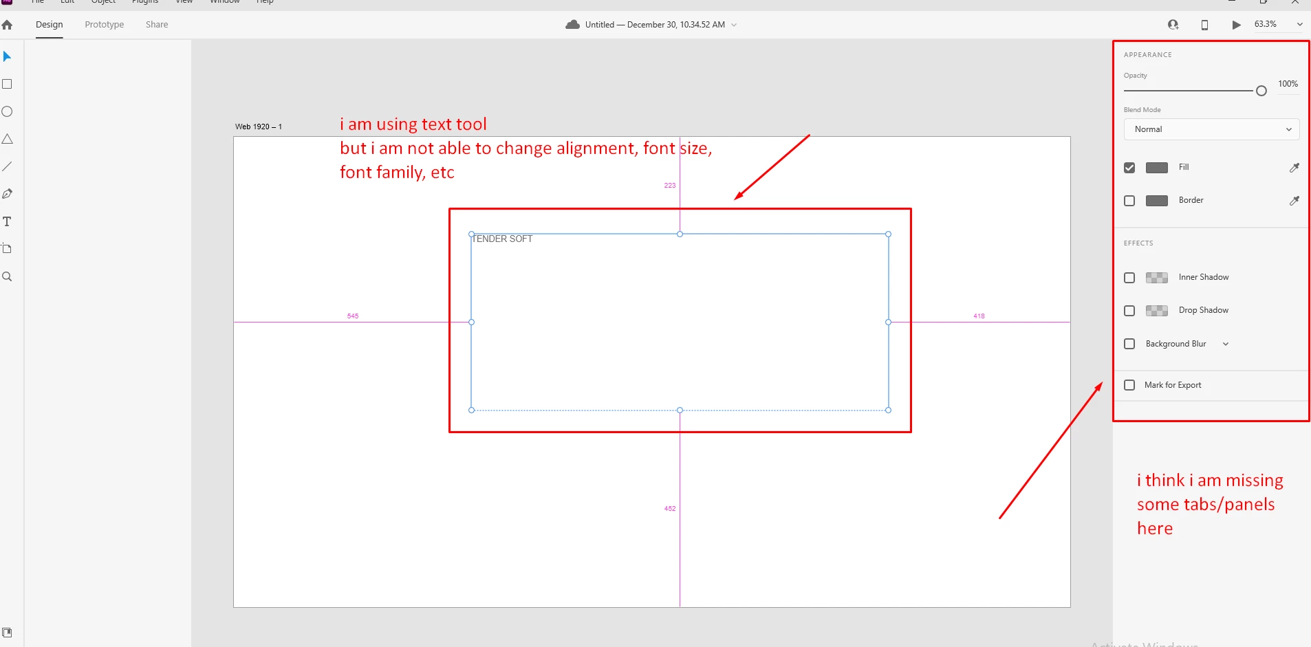 Text panel Missing (Adobe XD)
