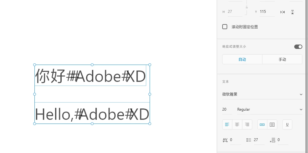 Windows Adobe XD,字体设定为微软雅黑类字体,输入的空格显示为“#”,其他字体无问题