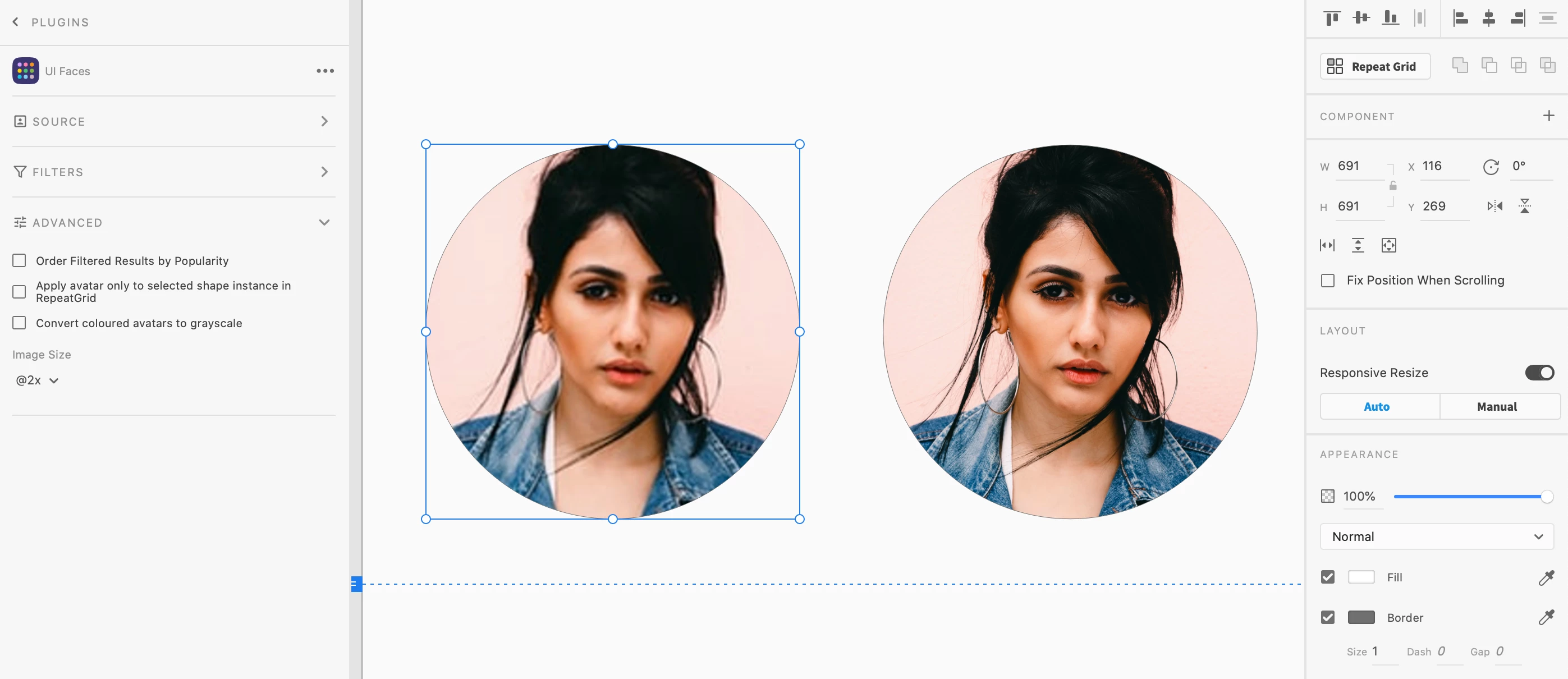 Why the UI Faces plugin pastes low quality images from Unsplash if they are actually available in hi resolution on their website? Is there any hidden property needs to be checked? Tried 2x option, it gives the same low pixelated resolution.