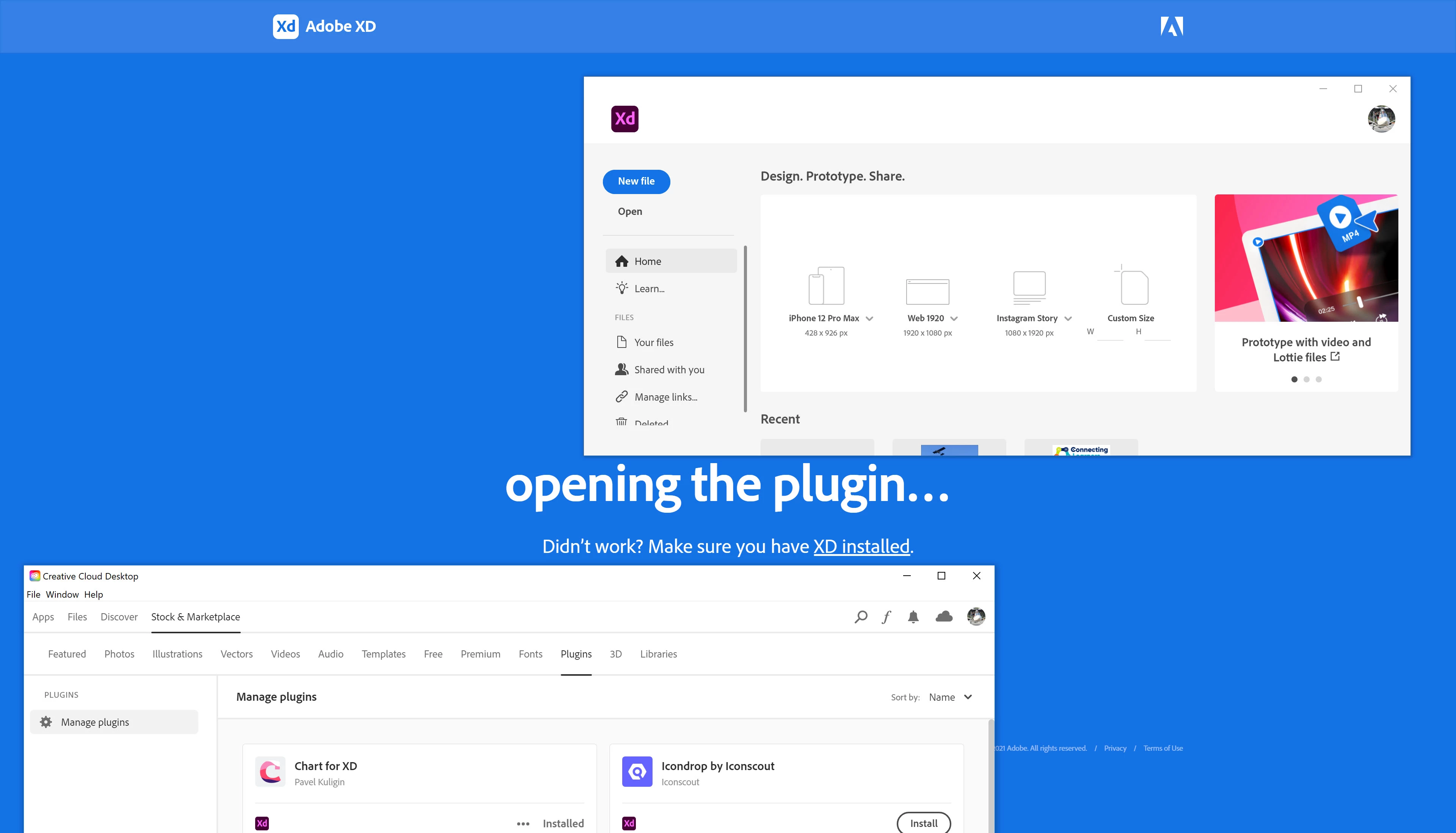 I would like to add the DraftXR plugin. I go to the DraftXR - Instant VR Prototyping in Adobe XD site and click on install. I receive the screen asking if I have installed XD. I have - windows 10 19041 XD version 45.1.62.3