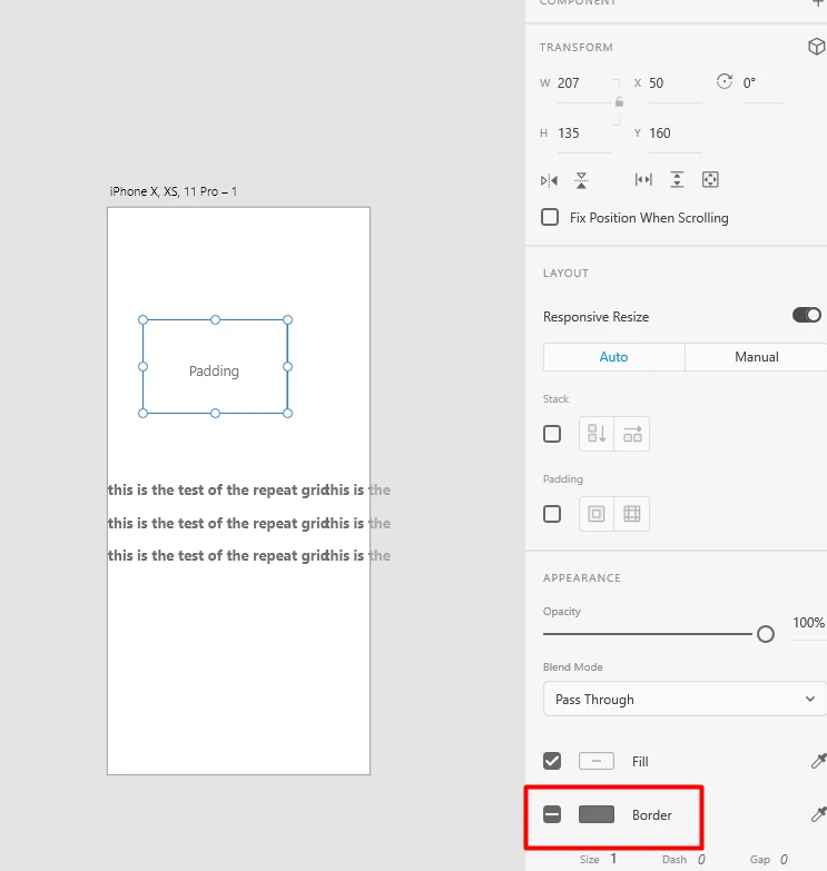 Unable to change border size