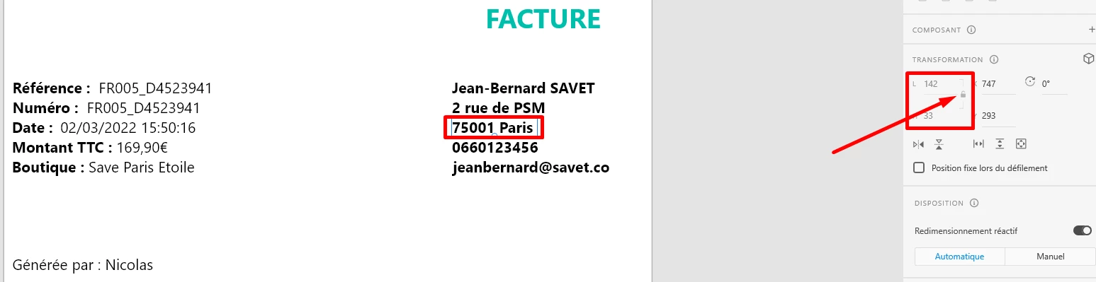 Hi Oliver, as Spas said, that disabled lock icon is not for locking values, is for locking aspect ratio, and since it's a text element, not a graphic, you can change its size in the "Text" section below of the area you pointed at the right sidebar, or as I see it you already selected that object, just hover over the circle in the middle (under the number "1" in that text) and click and drag it to edit the size of the text. You can check this tutorial for more info on text editing: https://www.youtube.com/watch?v=nTUKj6Mjf80 Hope this helps!