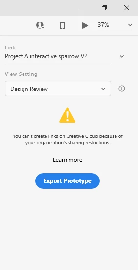 I keep getting this error when I try to create a shareable link for my website prototype: