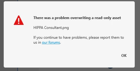 Unable to export to png file Error: 'There was a problem overwriting a read-only asset' in XD