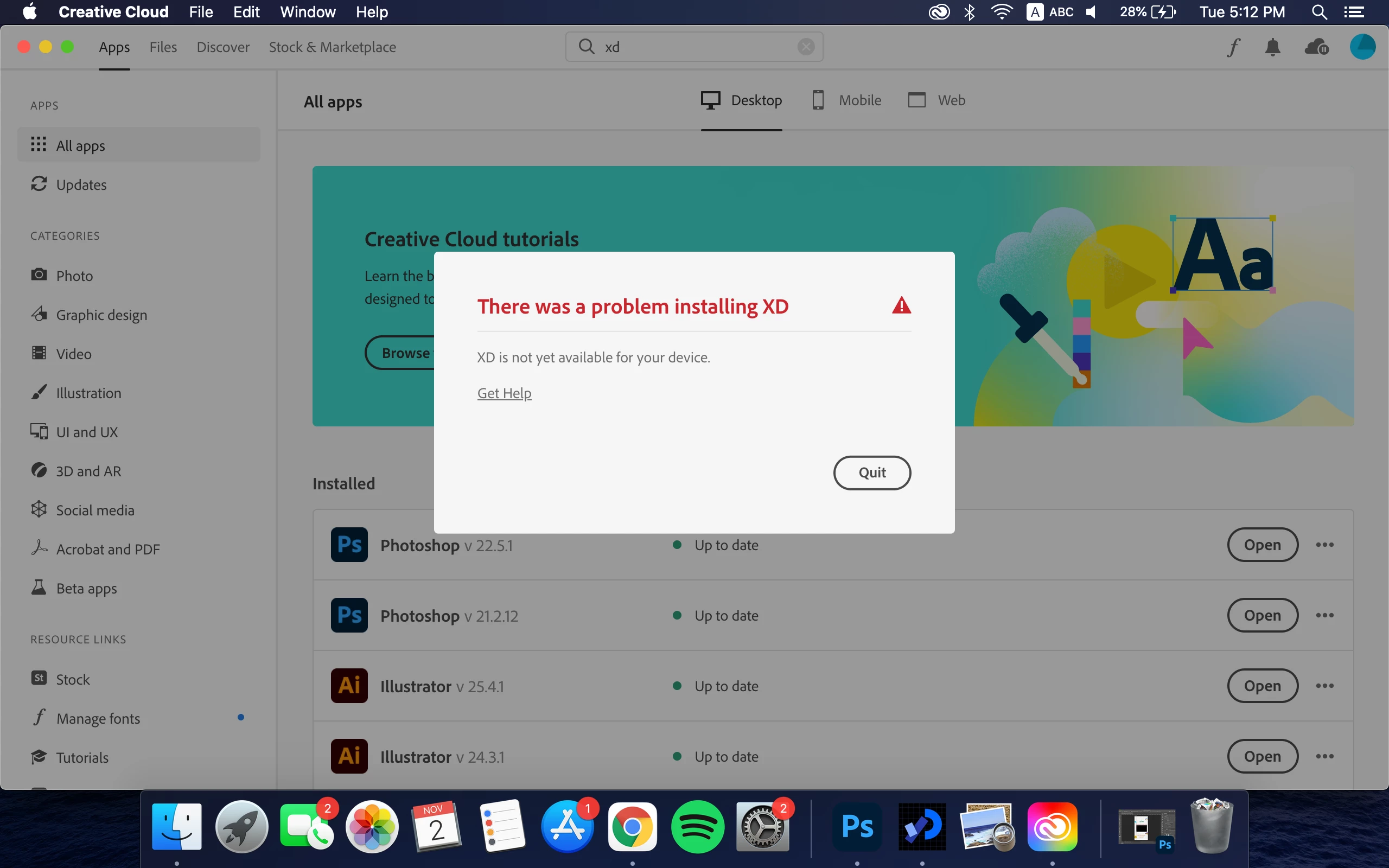 unable to install Adobe XD