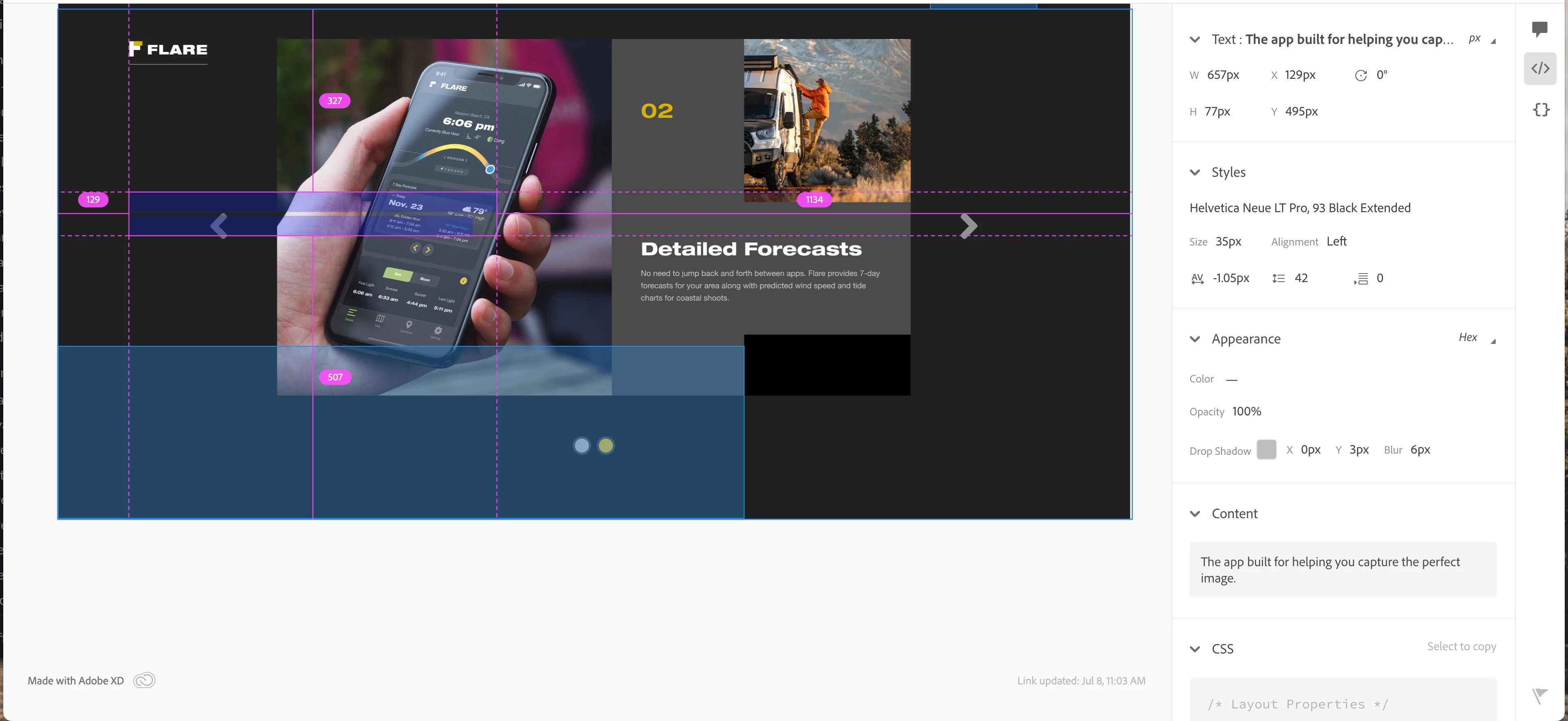 Unable to see the spec info fro above the fold in Scroll group specs in XD