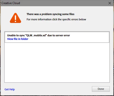 Can't sync Adobe XD files to Adobe Cloud. It used to be good when Windows version just released, but now won't work.