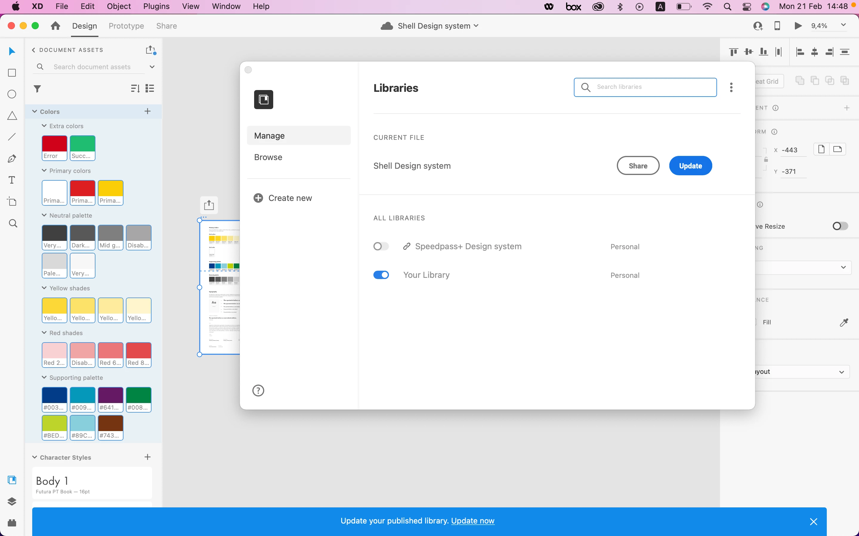 Unable to update the XD library design system