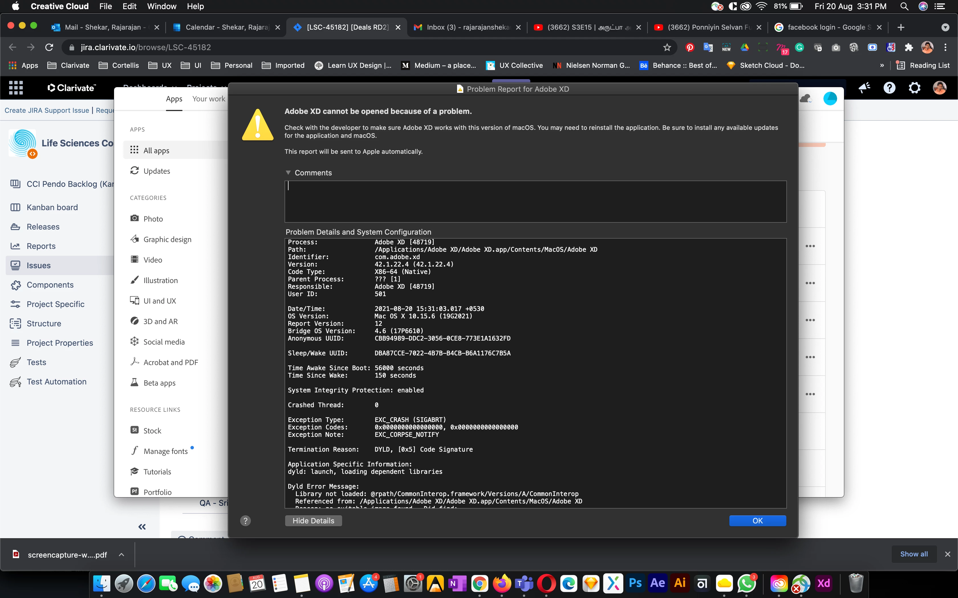 I can't use Adobe XD in my mac machine. I have a licenced version and still I am getting response as XD cannot open with the Mac OS. I have a Macbook with the macOS Catalina Version 10.15.6 . I have attached the screen shot of the response when I am trying to open Adobe XD. I request you to help to resolve this issue.