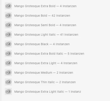In adobe XD i can just work with almost all upright type weights, some don´t show up right.