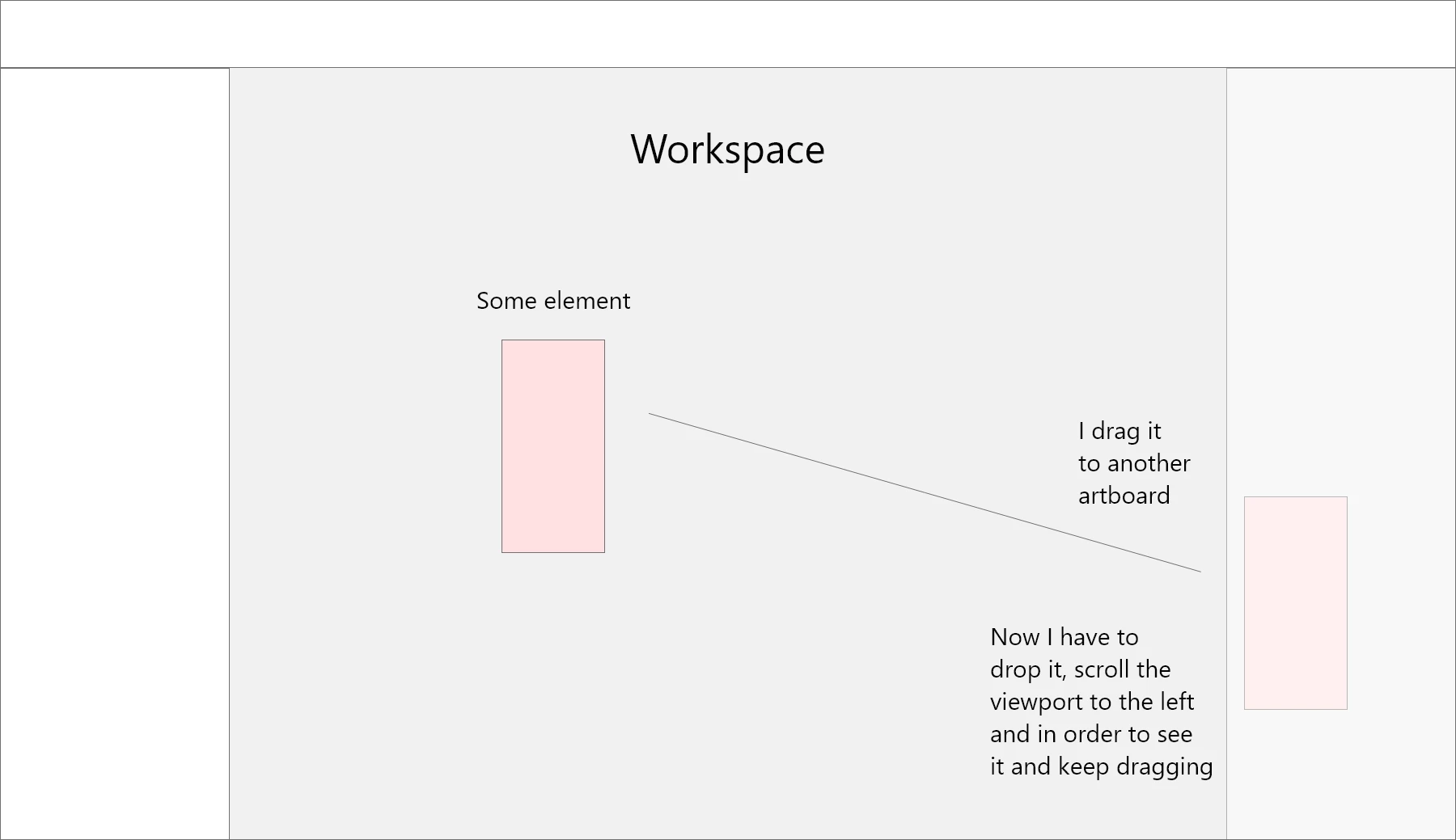 I have a new bug since a few days now - when i drag an element to a position which is outside of my viewport, the screen dosent move with me. Meaning, when the mouse with the element goes out of the viewport, i need to drop it, drag the viewport to a new one where the i can keep dragging the element and so on. I hope it was understood. I added an illustration of it.