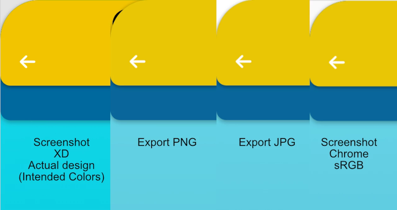 As you see colors after export are less saturated and washed out than during designing in XD.
