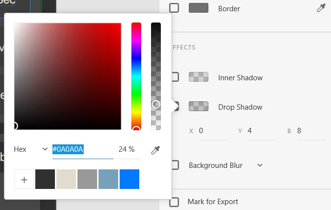 So It was brought to my notice that one of the xd links was giving out a weird hex code (#0A0A0A3D) for a shadow element that I had added and I can't figure out what it means. Attaching the screenshots below.