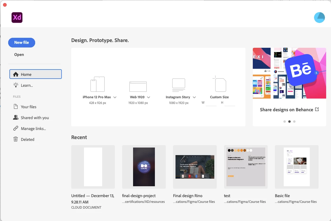 Where's the welcome menu with the ui kits that come with XD?