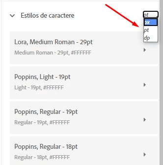 is Adobe XD using dp, px, pt? I can´t find this information in the gui.