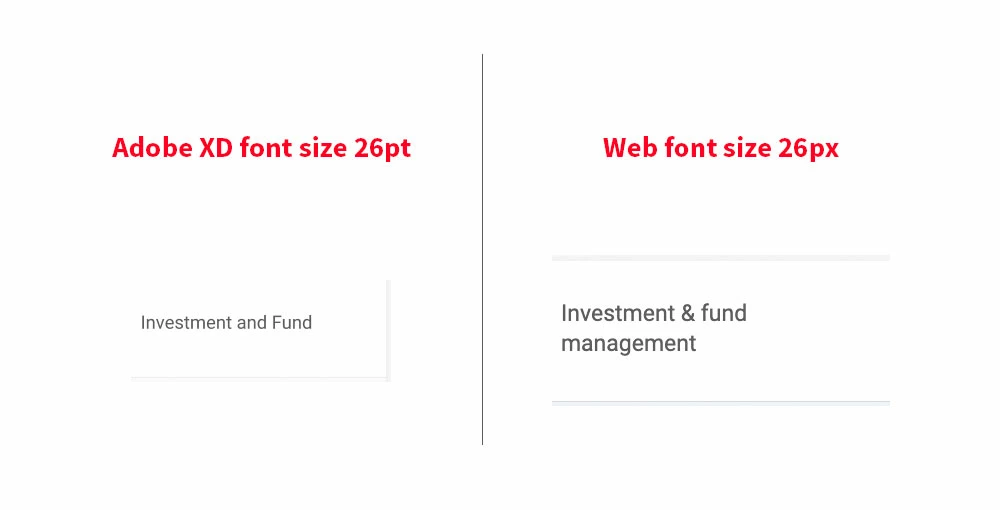 When the design is created in Adobe XD, MacBook Pro - Retina (2018), the prototype on the web browser shows the design absolutely perfect. However, when the developer uses the same font size assigned to the content, the font size just goes super large.