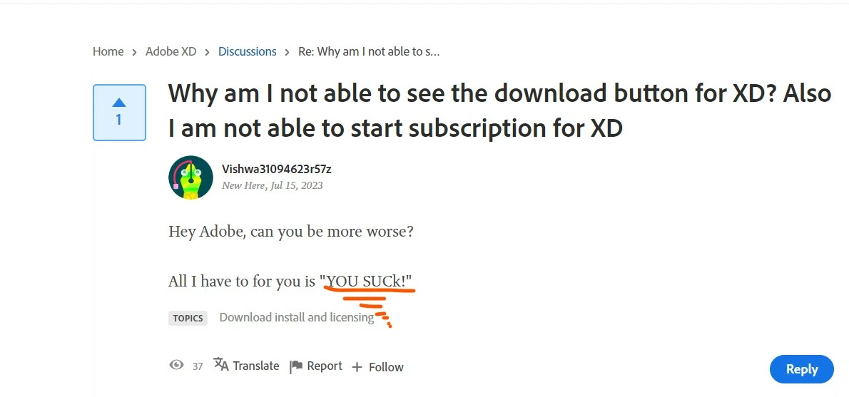 When I took a look at the support section, I came across a lot of people encountering this problem. then that means the problem isn't with these people, it's with the adobe.