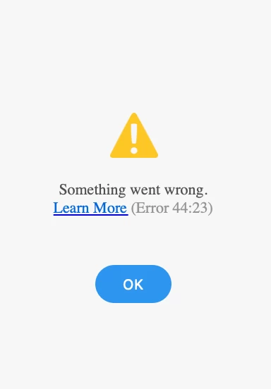 Hi I have been trying to publish a large file with 240 screens XD and unable to do so, which shows 44:23 error. Please help.