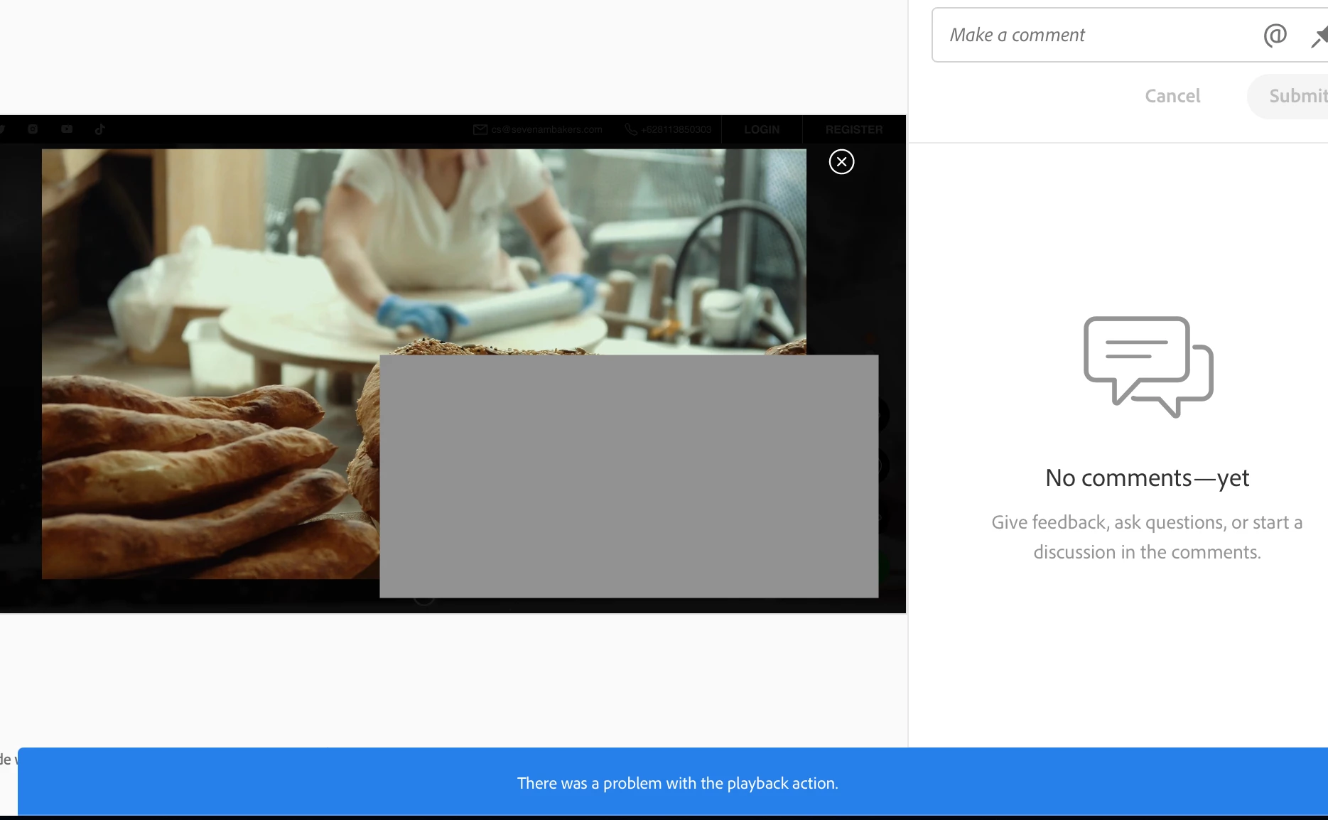 XD Adobe - There was a problem with the playback action (Macbook - Safari)
